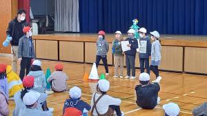 次は、3年生全員で、クラス対抗障害物リレーをしました。前転、跳び箱、ボールつきなど、様々なポイントを乗り越えて次の人へつなぎました。子どもたちも、教師も、大爆笑のレースとなりました。盛り上がりすぎて、もう一つ予定していた鬼ごっこはできなかったので、3学期初めのお楽しみです!