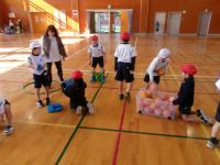 攻めと守りに分かれて「宝運び(鬼ごっこあそび)」をしました。