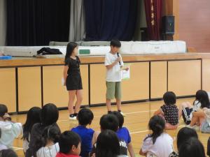 全校集会では、6月の目標を振り返り、7月の目標を伝えてもらいます。