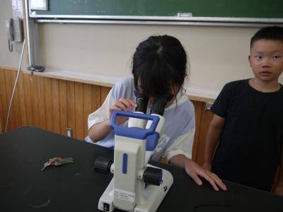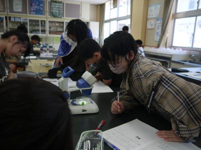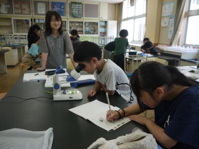 理科の授業で、メダカのたまごを顕微鏡を使って観察しました。