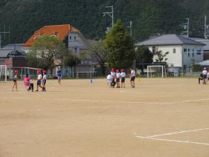 低学年の練習では、6年生が練習のお手伝いをしています。