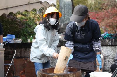 参拝させていただいた後には、自分たちが田植えと稲刈りをしたお米を使ってお餅つきをさせていただきました。