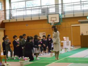 1年生も初めての小学校で、初めての式、最後までよく頑張っていました。