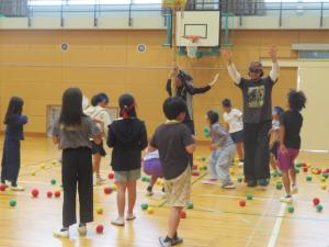 自転車教室後、体育館にて親子活動をしました。その名も・・・「逃走中!!!」