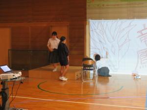 2学期の体育大会に向けて、活動が始まっています。この日は、アピール幕の原画の転写作業をしました。
