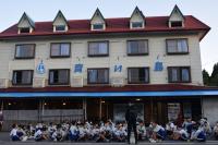 そして、ロッジへ移動し、話をしたりトランプをしたりして、思い思いの時間を過ごしました。夕食は、バーベキューでした。たくさんお肉を準備していただき、お腹いっぱい味わっていました。中には、ご飯を4杯もおかわりした生徒もいました。