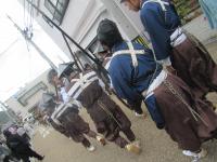 城下町で、約100人の武者行列が町を練り歩く祭り「丹波柏原藩織田まつり」が毎年行われており、参加した生徒は、武士に扮して城下町を闊歩しました。「観光客や地域の方々がたくさん来られていた」「はじめて武士の格好をした」などと話していました。