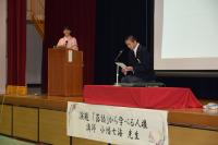本校では、PTA活動の一環として保護者、生徒、地域の皆さま向けの人権講演会を開催しています。今年度は、落語教育家の講師の方をお招きしました。