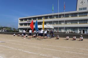 体育祭2日目です。みんな一生懸命練習に取り組んでいます。今日は、「入場行進・開会式」「ブロックアピール」「ブロックでの競技練習」を行いました。