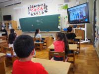 5年生と6年生が、新しいALTと初めての外国語の授業。この日は、ALTの自己紹介。次々と映し出される母国の動画や写真、ALTの家族や趣味、好きな食べ物の紹介に驚いたり、歓声を上げたり、憧れたり。