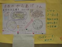 家庭科の学習。班ごとに考えた理想のメニュー。イラストでまとめて掲示しました。どのメニューも栄養を考え、美味しそうに仕上がっています。