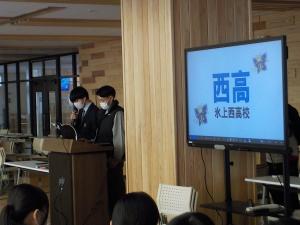3月19日の午後、市内3高校(いずれも県立柏原高校、氷上高校、氷上西高校)から代表の高校生(主に山南中・和田中の卒業生)を招いて、中高連携事業として3高校の取組や学校生活を紹介してもらったり、中学生の取組を報告したりしました。山南中は、1,2年生が参加しました。