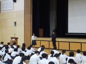 40日間を超える長い夏休みを終え、今日から2学期がスタートしました。生徒たちは久しぶりに出会う級友との会話を楽しみながら、「○○な2学期にするぞ」と気持ちを引き締めていました。