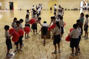 体育祭練習期間の半分が過ぎ、ひとつひとつの練習に熱がこもってきました。今年の練習期間は好天に恵まれ、ほぼ予定通り消化できているのですが、何せ暑くて暑くて。暑さ対策でメニューを入れ替えたり場所を変更したりと、これまでになかった対応をしなければならない状況です。そのような中ですが、生徒たちは来る本番に向けて着々と準備を進めています。