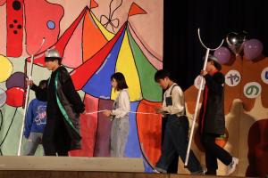 最終回はお待ちかねの3年生演劇発表です。どのクラスも思いのこもった素敵な発表でした。演劇では、ついつい舞台に立つ役者に目が行ってしまいますが、よい劇にするためには、演者を支える(音響、照明、衣装、道具等の各担当者)周囲の動きが大切です。それらがひとつになったとき、想像を超える発表ができるのではないでしょうか。