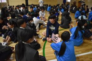 3年生の本部役員は、自分たちがしたいことをするのではなく、1年生が喜んでいる姿を想像して内容を決定していました。前例は参考にしますが、主役の1年生のことを優先し、自分たちで考え行動していました。だからこそ、全校生が楽しめるのだと思います。この思いを大切にしていきたいです。(岸田)