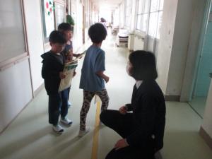 1年生が自分の名前と好きなものを先生に伝えました。丁寧に書いた名前を見せて、上手にお話することができていました。