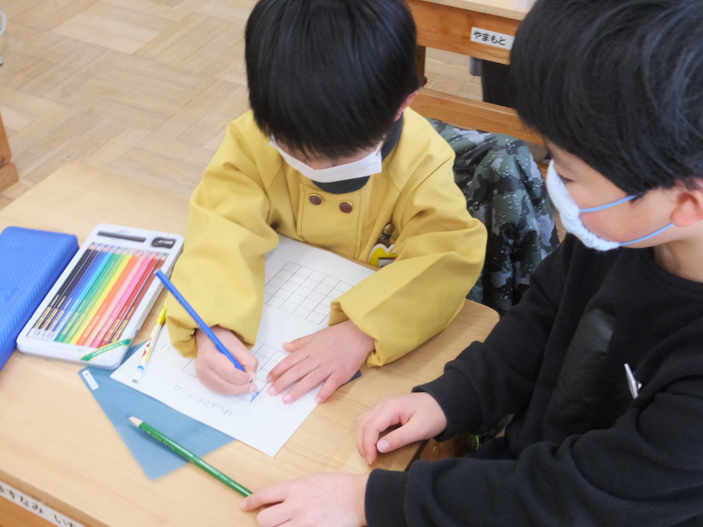 1年生は「こども園の子達に『学校っておもしろい!楽しい!』って思ってもらう」を目標に準備をしました。